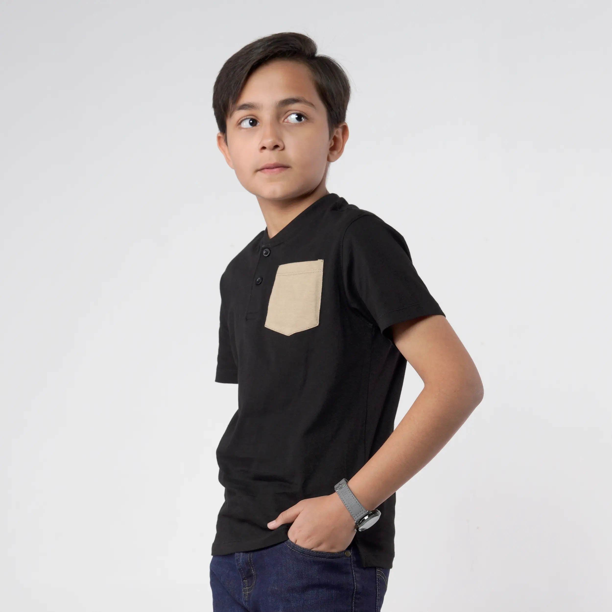 The Black Paradise Henley is your little one’s go-to for cool, effortless looks. With a tan patch pocket and a woven canvas tag, this cotton essential balances comfort and charm in one solid piece.