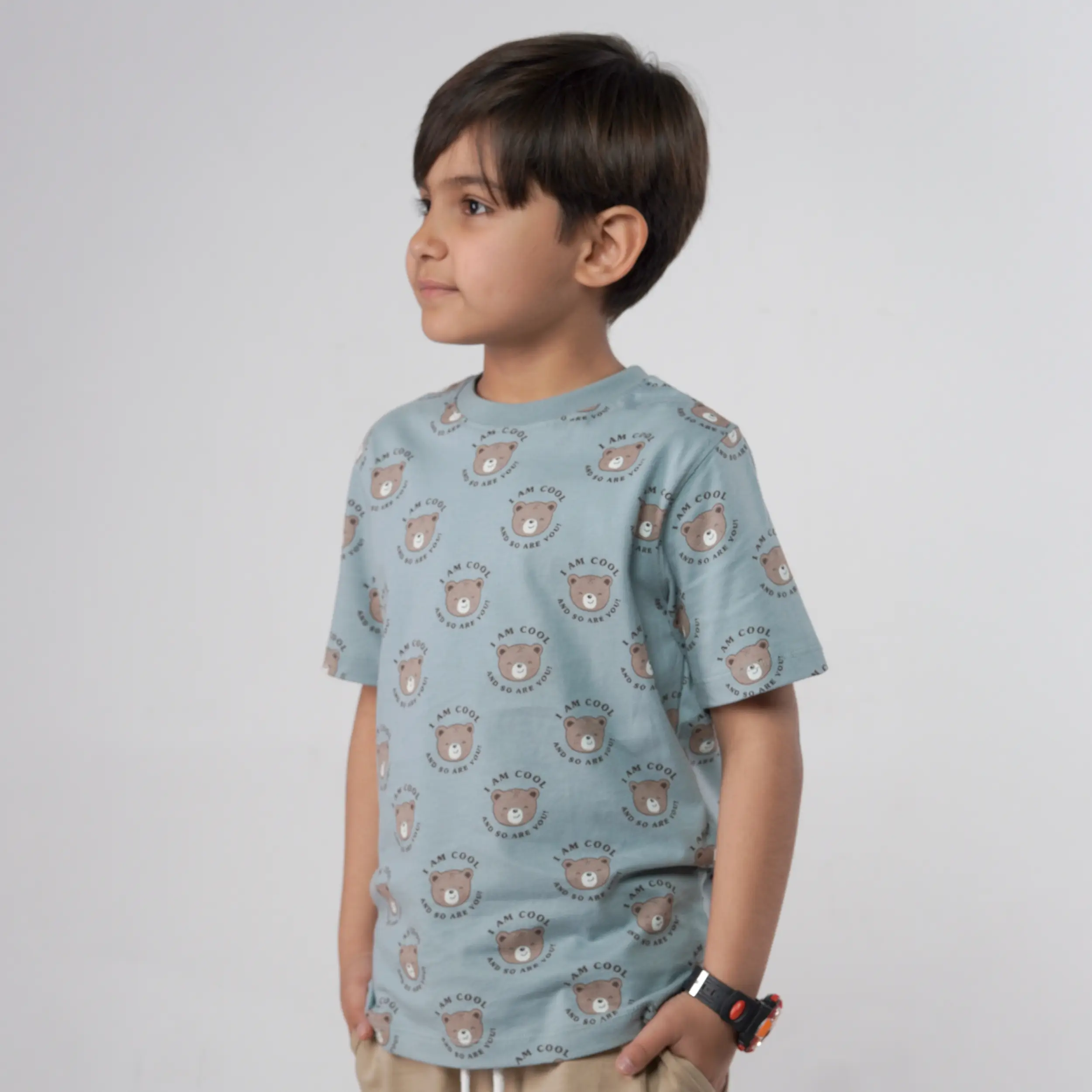 Add a touch of wilderness to your little one’s wardrobe with our Boys Bear Printed Blue Tee. The bold bear graphic and vibrant blue shade make it a standout piece for casual outings and playful days.