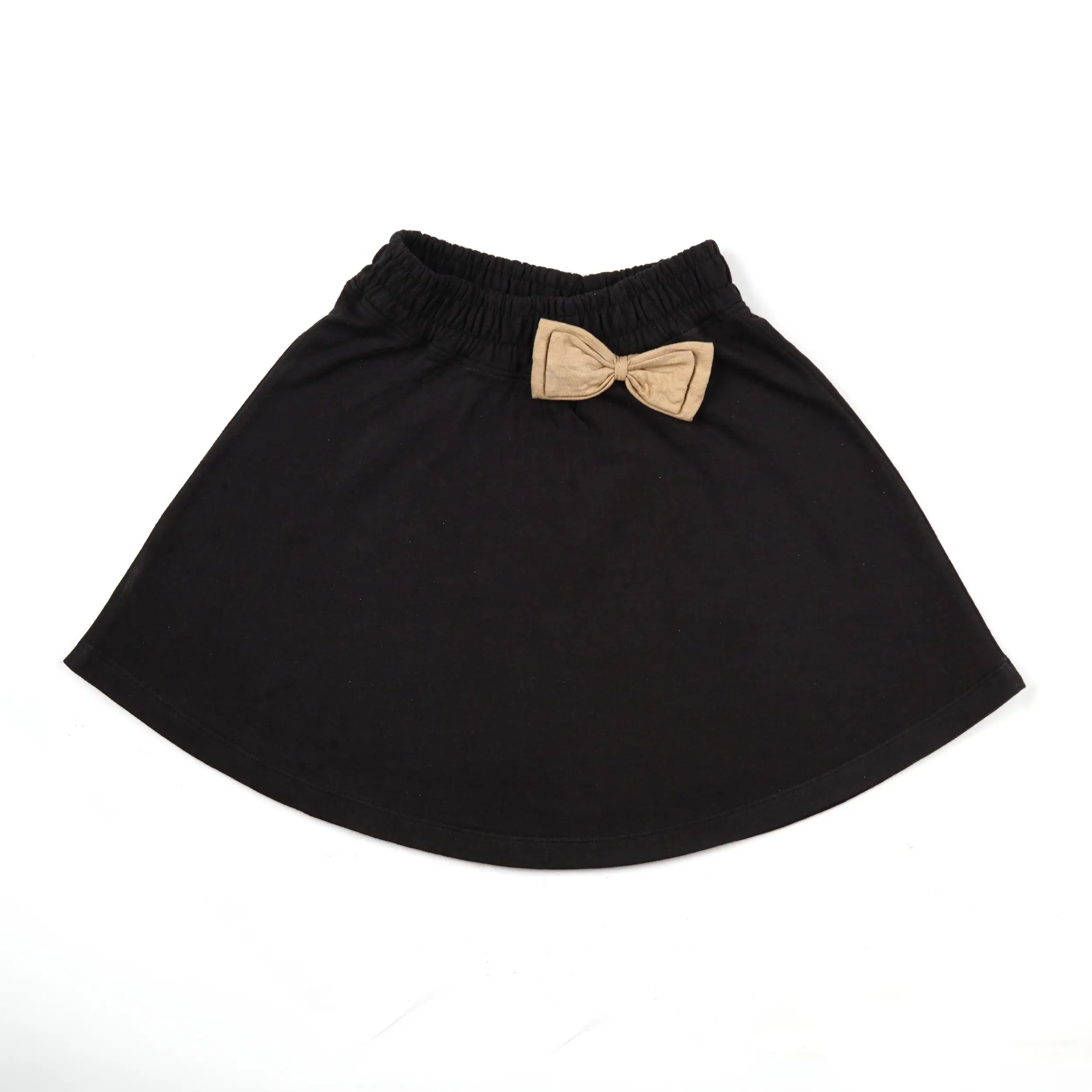 Classic black meets a chic tan bow for a timeless look. This premium cotton skirt features a soft, twirl-friendly design with a subtle bow detail on the left side, perfect for dressing up or everyday elegance.