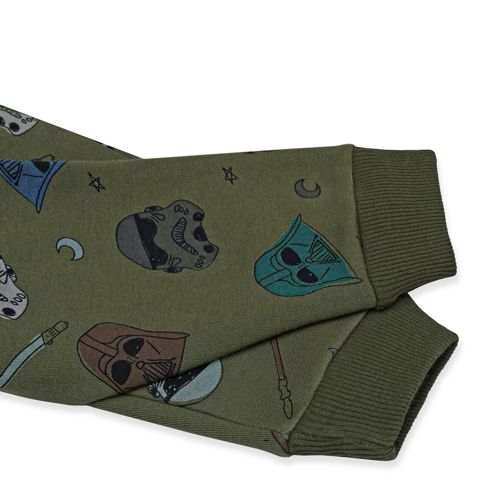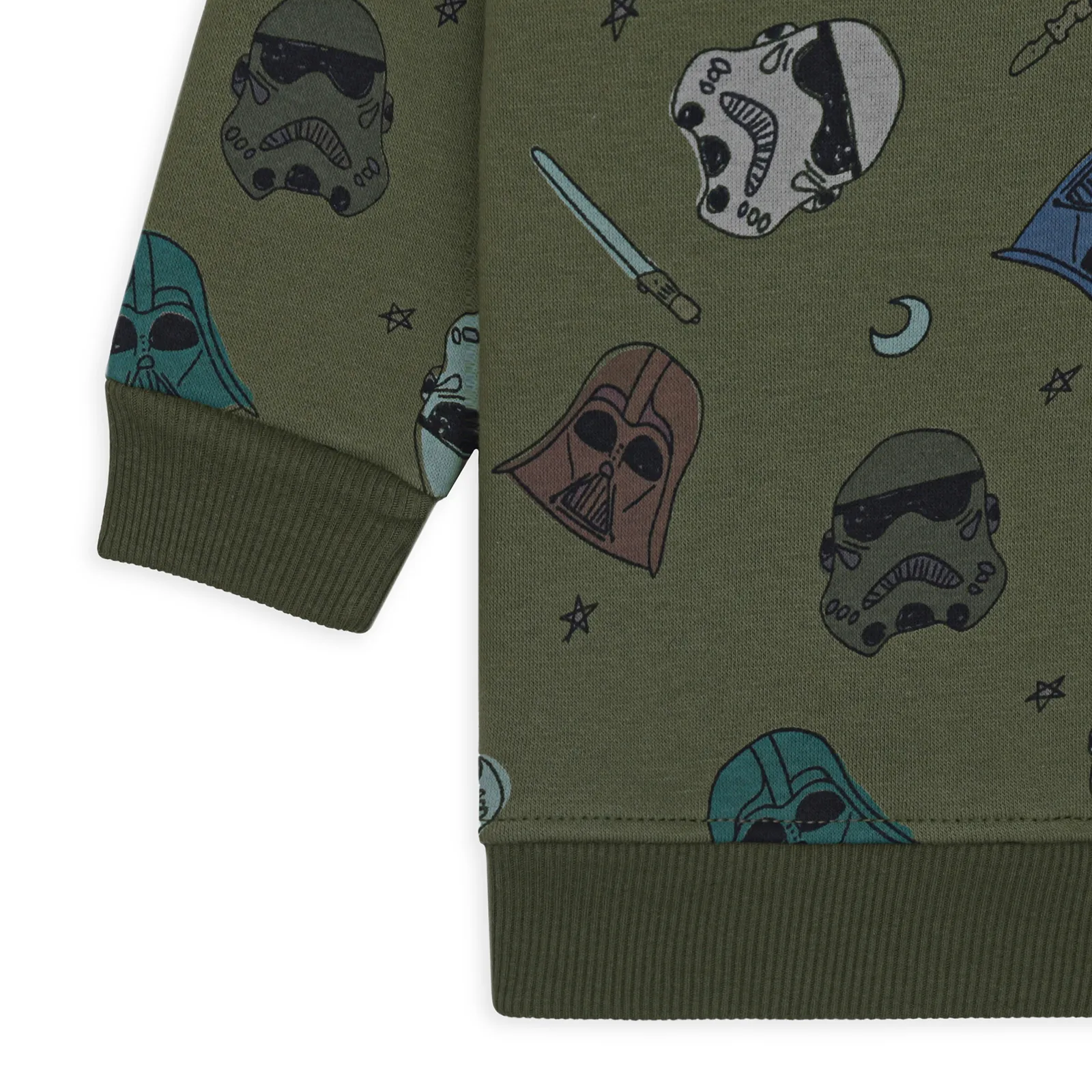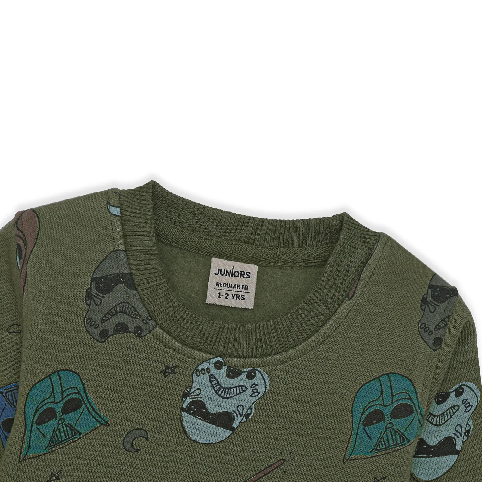 Let your little one channel their inner hero with this dark green sweatshirt and trouser set featuring an all-over rotary print inspired by Star Wars’ iconic Darth Vader. Made from premium fleece fabric, this winter essential provides warmth, softness, and comfort while ensuring durability for active kids. Perfect for cozy days at home or playful outdoor adventures, this set is a must-have for young Star Wars fans!